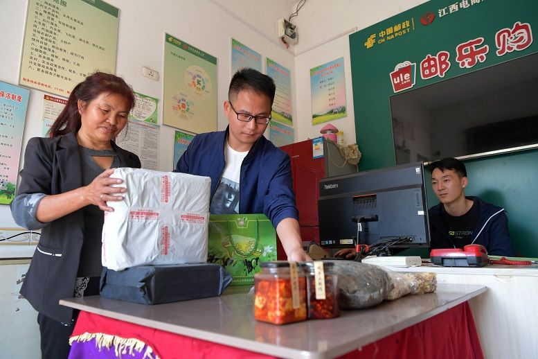 湘東區(qū)東橋鎮(zhèn)中院村里的電商服務(wù)站 彭昭之 攝