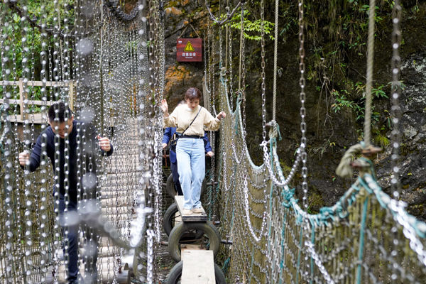 在重慶萬盛經(jīng)開區(qū)黑山谷風(fēng)景區(qū),幾名游客體驗體育項目 劉潺 攝