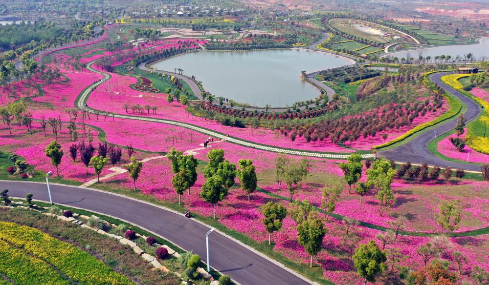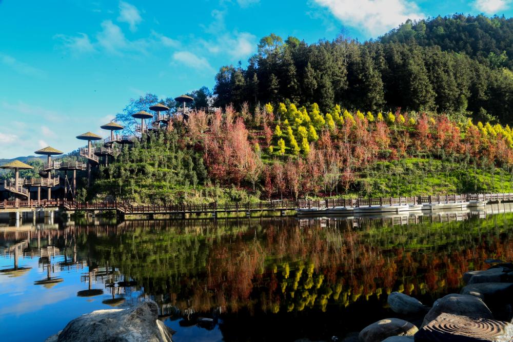綠樹成蔭,花海絢爛,自然山水景觀和多層次地形地貌融合……2020年8月,紅河州彌勒市太平湖森林小鎮(zhèn)的山地石漠化公園正式開放,旋即成為“網(wǎng)紅打卡地”。