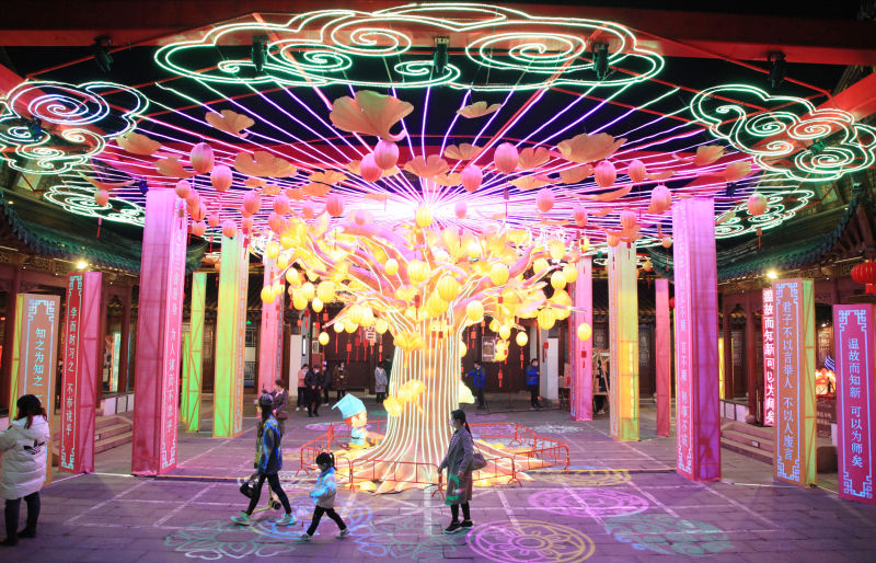 游人在江蘇南京秦淮燈會(huì)賞燈游覽 劉建華 攝