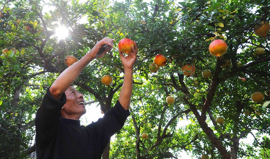 “我在這種了30多年石榴,生意一年比一年紅火。今年的石榴品種‘秋艷’還沒等上市就被搶訂一空?,F(xiàn)在政府大力發(fā)展石榴產業(yè),每年都有很多游客來園子里采摘、觀光,多余的果子就賣給周圍的石榴加工廠,等于是雙保險?!惫r李志保說。