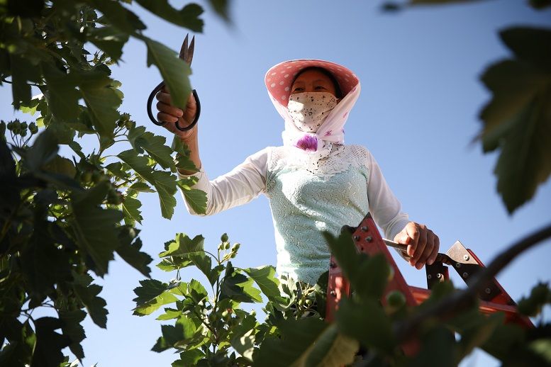 務(wù)工人員在甘肅省定西市通渭縣常家河鎮(zhèn)山楂小鎮(zhèn)修剪山楂樹(shù) 馬希平 攝