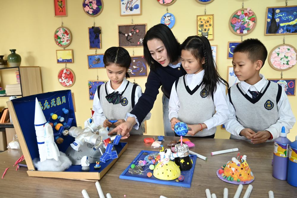 沈撫育才實驗學校小學3年級學生用粘土制作太陽系模型