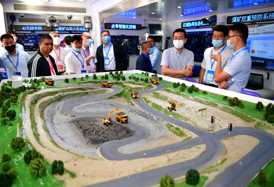 9月8日,第十五屆榆林國(guó)際煤炭暨高端能源化工產(chǎn)業(yè)博覽會(huì)在陜西榆林市拉開帷幕。這是觀眾在華為5G+智能礦山展位參觀。新華社記者 邵瑞 攝