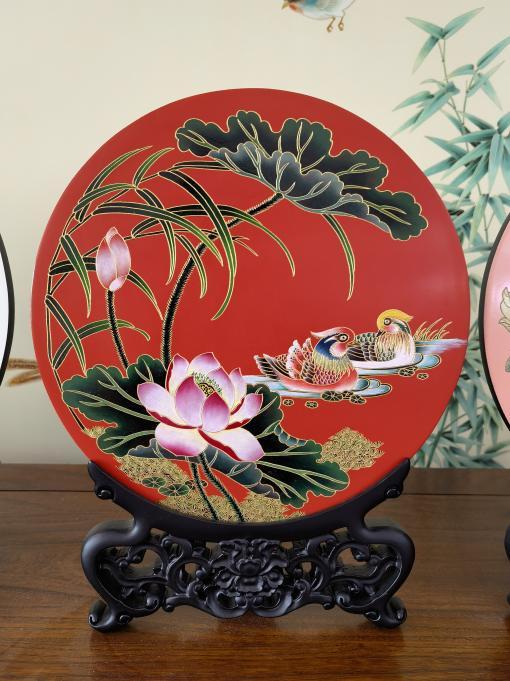 申偉達(dá)團(tuán)隊制作的“鴛鴦戲水”漆器賞盤 受訪者供圖