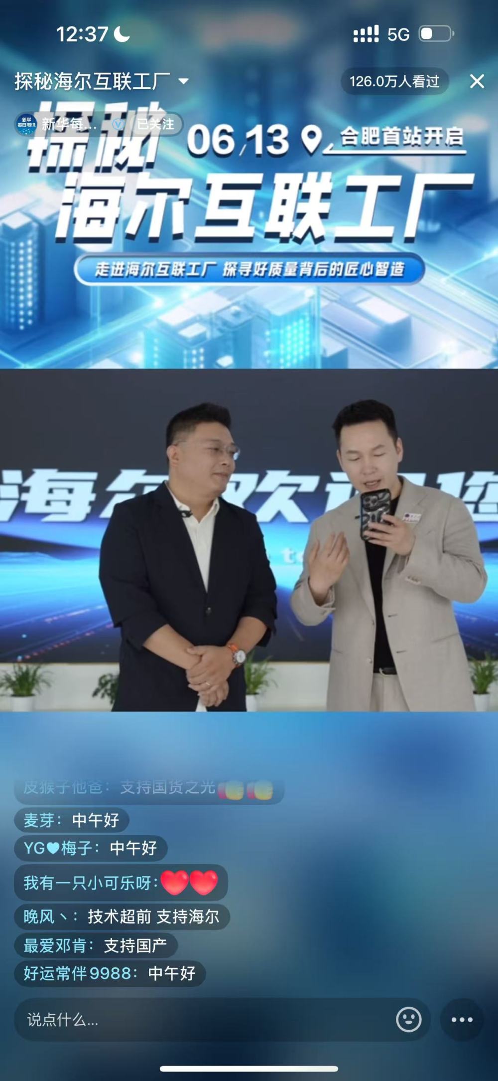 6月13日,以“海爾換新萬里行超級(jí)工廠購(gòu)”為主題的直播探廠活動(dòng)拉開帷幕。新華每日電訊對(duì)海爾合肥互聯(lián)工廠進(jìn)行獨(dú)家探廠直播,帶領(lǐng)觀眾直擊工廠流水線,解密品質(zhì)產(chǎn)品從生產(chǎn)到組裝的全流程,一起見證"好質(zhì)量、好產(chǎn)品、好服務(wù)"的海爾實(shí)力。很多網(wǎng)友留言直呼大開眼界,兩個(gè)多小時(shí)內(nèi)直播間吸引超過130萬人次觀看。