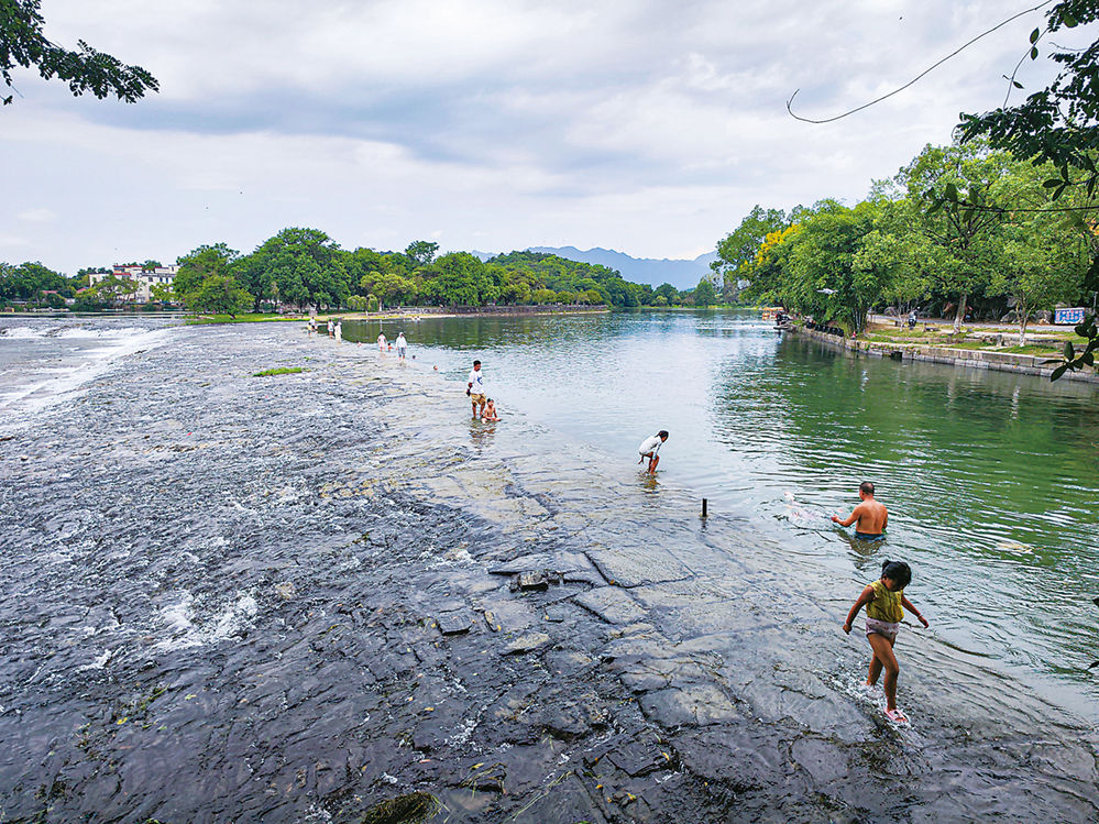 我有3次到訪靈渠。第一次是1999年,在走長征路時,來到廣西興安,遇到講解湘江戰(zhàn)役的老學者陳興華,他建議一定要看看靈渠。當時靈渠并不在預定日程之中。陳興華其實是一位靈渠專家,對這項古代工程滿懷感情。他帶我們來到一個公園式庭院,大門口鑄有兩座金戈鐵馬的秦軍兵士像,這與我熟悉的同樣是秦國水利工程的都江堰不同。映入眼簾的靈渠是一灣平靜“溪水”,寬六七米,深四五米,碧綠悠緩,甚至感覺不到它在流,不像都江堰岷江奔騰直下那樣聲勢浩大。有當?shù)匕傩赵谒镤揭拢⒂泻⒆佑斡?。兩?cè)綠樹,最古老的有700年。今年我又兩次偶然造訪,且又遇陳興華,不同的是,還參觀了新建成的靈渠博物院。