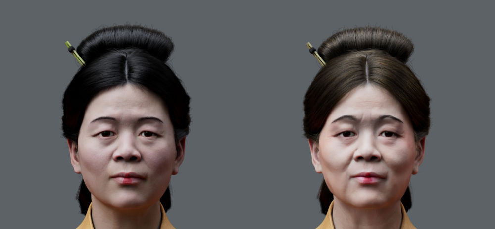 湖南博物院公開發(fā)布的“辛追夫人”3D數(shù)字人形象,左為35歲左右,右為50歲左右