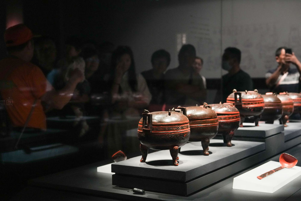 游客在湖南博物院長(zhǎng)沙馬王堆漢墓陳列展廳觀賞漆木器 薛玉舸 攝