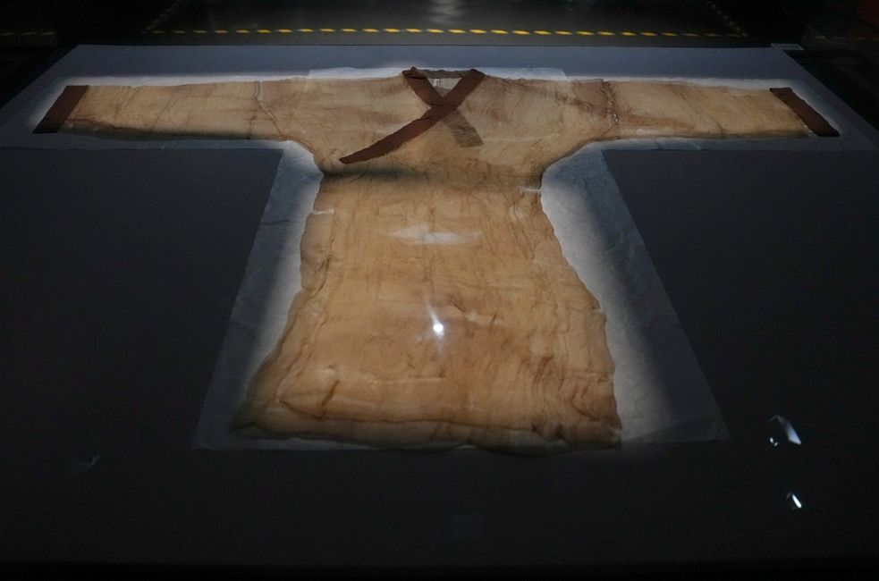 湖南博物院長(zhǎng)沙馬王堆漢墓陳列展廳展出的素紗單衣 薛玉舸 攝